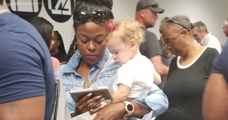 Кејти Монтгомери Васур, нејзиниот партнер и нејзината едногодишна ќерка требало да се вратат дома, во Оклахома, по нивниот одмор. Тие веќе поминале еден лет, но морале да поминат на царина за да фатат уште еден лет за дома. Редицата каде што чекале била долга, а и по долгиот ден поминат во патување, Марли била немирна. Но, со помош на една жена Марли се смирила. Жената го држела бебето за родителите малку да се одморат. Кејти ова го објавила на својот фејсбук-профил заблагодарувајќи ѝ на жената за нејзината љубезност.
