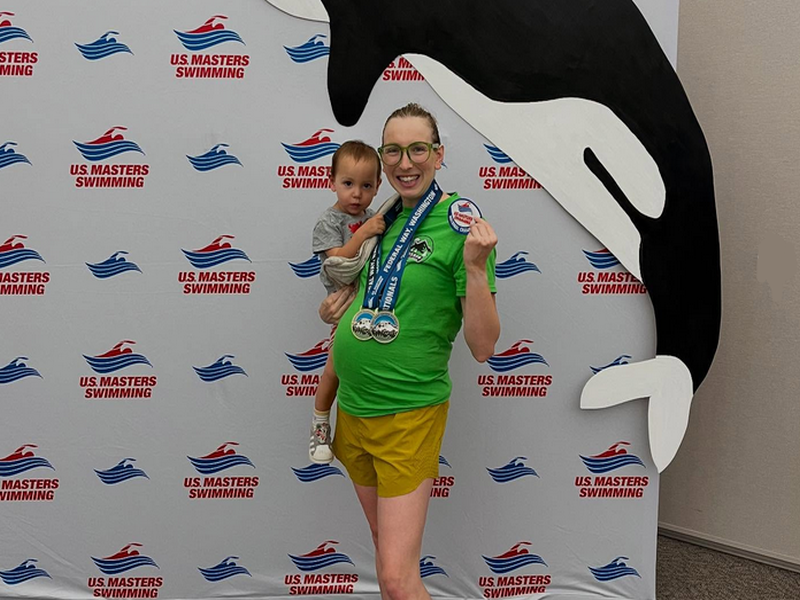 Американската асоцијација за мастер-пливање објави приказна за пливачката Илса Фајерабенд од Орегон, која освои три медали на натпревар. Сето тоа во 35. недела од својата втора бременост.