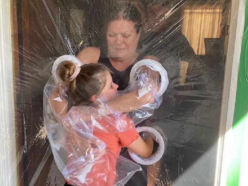 Десетгодишната Пејџ од Риверсајд, Калифорнија, направила завеси за гушкање откако на интернет видела како луѓето користат ќебиња за да прегрнат членовите од семејството за време на пандемијата.