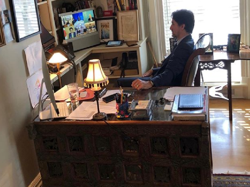 Распоредот на Трудо продолжува од неговиот дом. Тој одржува дневни состаноци со неговиот кабинет, разговара со лидерите на покраините и дискутира стратегии со премиерот на Велика Британија, Борис Џонсон, и францускиот претседател Емануел Макрон.