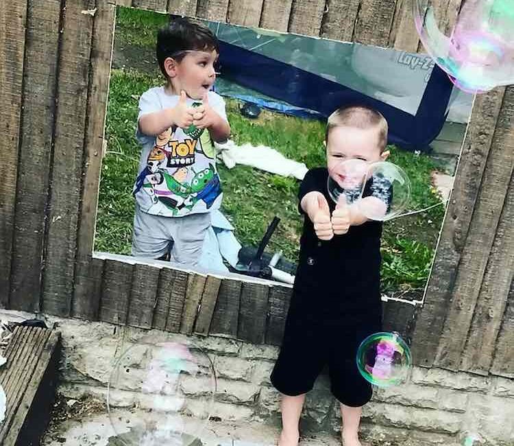 За да ги обедини, а истовремено да ги почитува насоките за социјално дистанцирање, мајката на Арло и Арабела исекла дупка во нивната заедничка ограда и поставила прозорец за децата да можат да се гледаат додека играат.