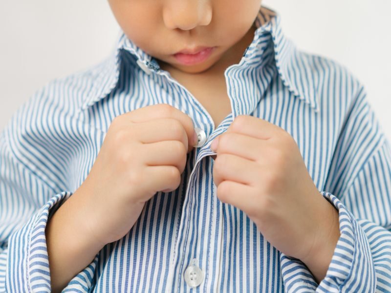 - Кога го охрабрувате детето само да се облече, секогаш понудете му лесна и приспособлива облека која ќе ја поттикнува самодовербата кај детето дека може и дека е способно само да се облече.
