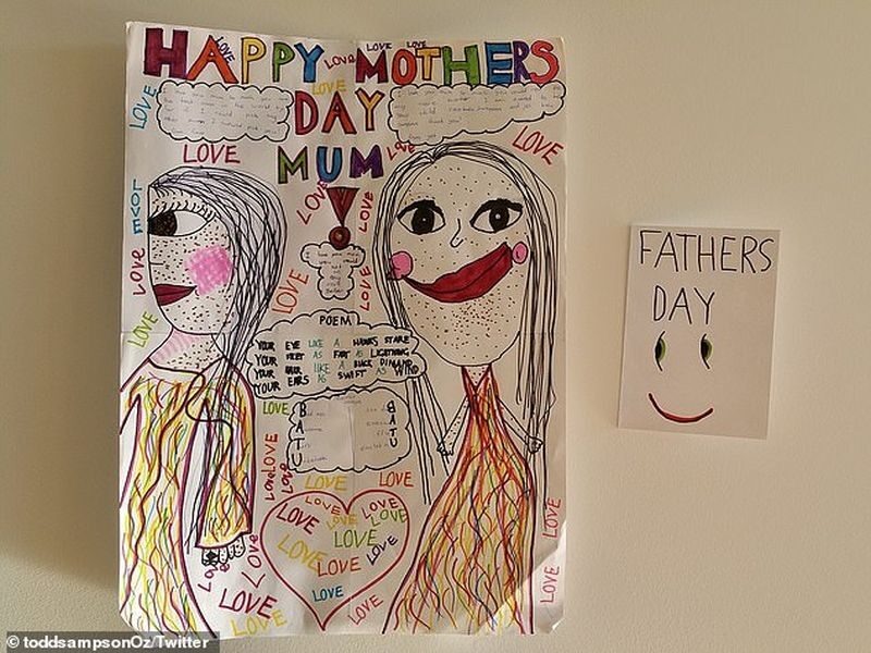 Австралискиот креатор на документарни филмови Тод Сампсон на социјалните мрежи сподели каква честитка доби тој од своите деца за Денот на таткото, а каква честита доби неговата сопруга за Денот на мајката.