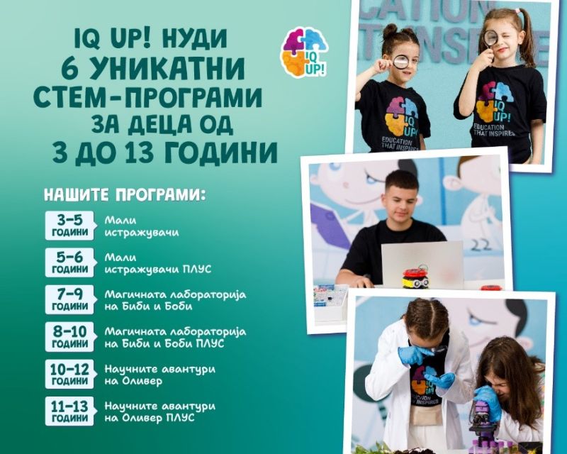 IQ UP! е местото каде што секое дете има простор да учи на свој начин, со поддршка која го води кон самодоверба, знаење и љубопитност за животот.