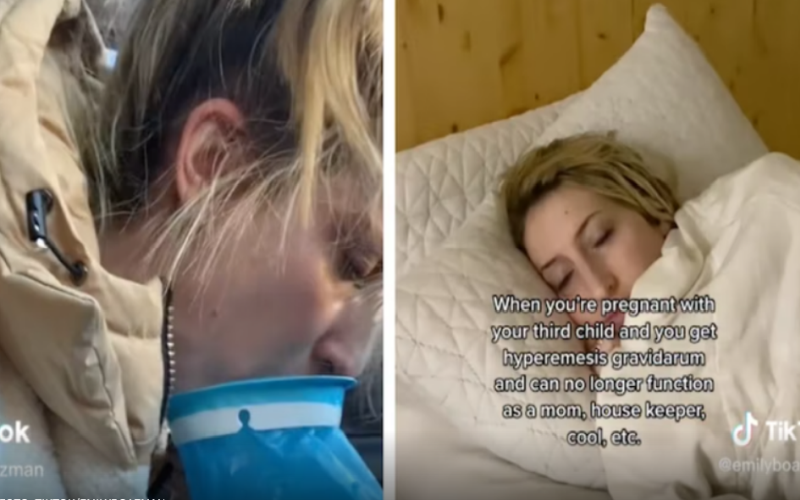 Емили Боазман го сподели своето брутално искуство со хиперемеза гравидарум на нејзиниот профил на „Тик-ток“ во сега популарното видео кое покажува колку многу нејзиниот живот бил во застој поради овој неочекуван симптом.