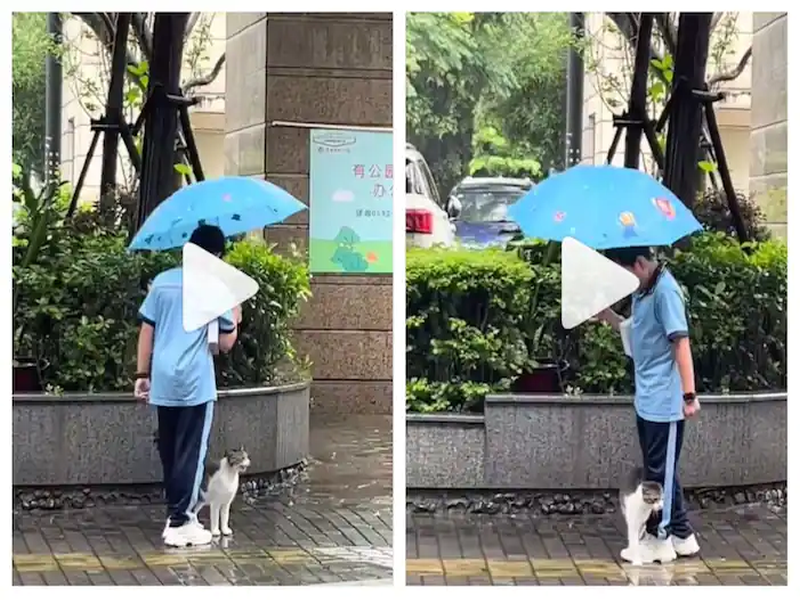 Демонстрирајќи го тоа, интернетот е воодушевен од добрината на едно момче откако ѝ помогнало на мачка додека врнело. Имено, момчето држело чадор над мачката за таа да не се наводени на дождот.