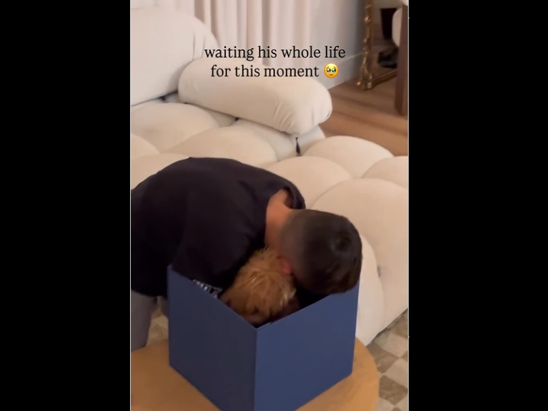 Веднаш потоа родителите му даваат уште една кутија во која се наоѓа вистинско кученце. Момчето ја отвора кутијата и сфаќа дека внатре има живо кученце, па почнува силно да плаче.