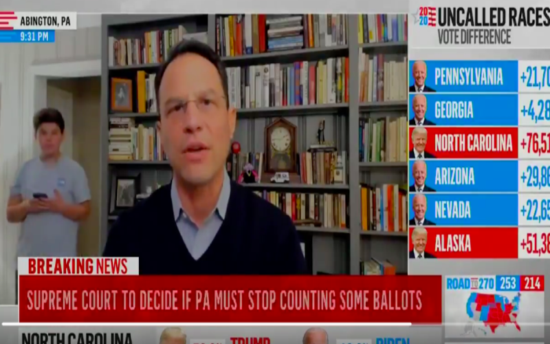 На видеото се најде синот на јавниот обвинител на Пенсилванија, Џош Шапиро, додека разговарал со Ем-ес-ен-би-си за изборите. На видеото се гледа како момчето влегува во собата, сфаќа што се случува, па полека излегува назадечки.
