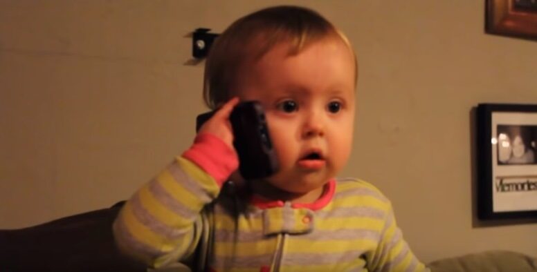 Ова девојче уште не знае да зборува, но затоа знае сè да му каже на својот татко преку телефон. Преубава глетка е разговорот меѓу нив двајца.