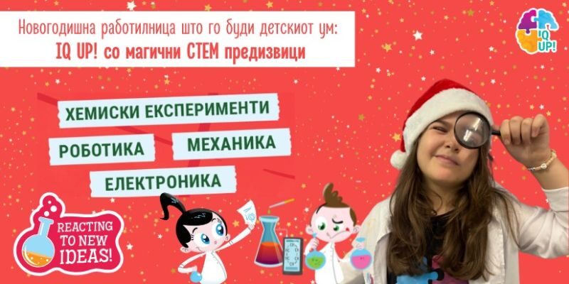 Овој месец IQ UP!училишните центри низ државата ве покануваат на возбудлива новогодишна научна работилница што ги комбинира најдобрите аспекти на науката, технологијата, инженерството и математиката со празничната магија. „Новогодишна научна магија“ е интерактивно едукативно искуство кое ги инспирира децата да учат преку игра, истражување и соработка.