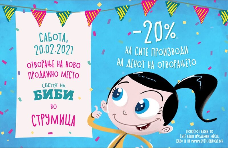 Утре се отвора најновиот продажен салон на „Светот на Биби“ во Струмица, па по тој повод ќе има попуст од 20% на сите производи.
