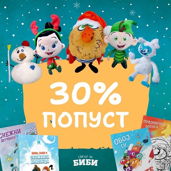 „Светот на Биби“ започна специјална акција за сите заинтересирани за нивните детски производи. Во периодот до 31 јануари овој македонски бренд нуди попусти до 30 отсто на омилените играчки, сликовници и боенки на дечињата.