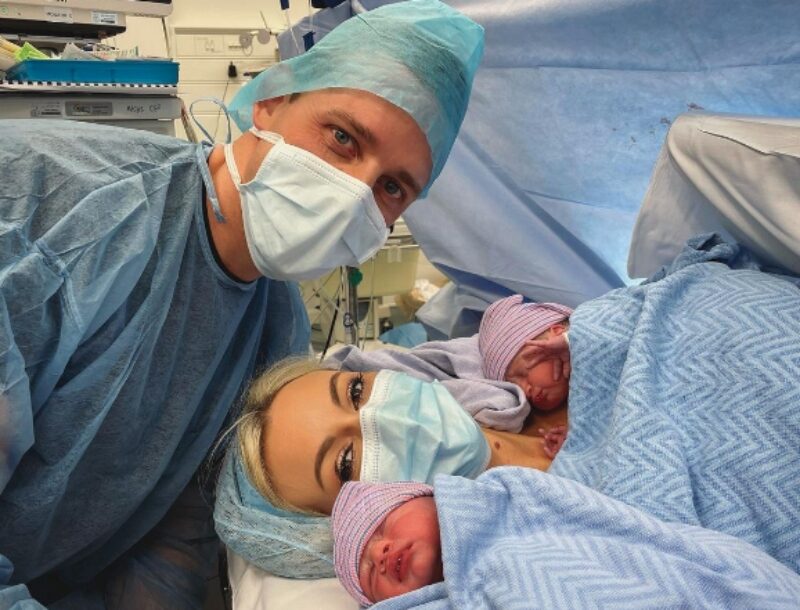 „Нашите прекрасни и идентични близнаци, Хуго и Оскар, пристигнаа безбедно на светот, а нашите срца се преполни со љубов. Станавме семејство од 5 члена и сите наши соништа се исполнија. Многу сме му благодарни на тимот во болницата.“