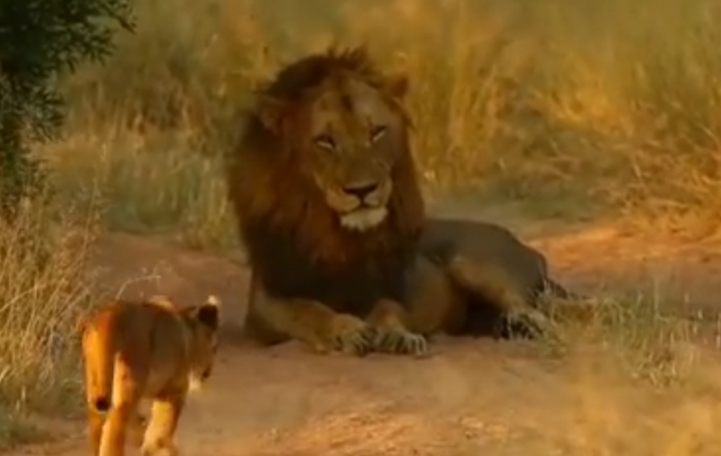 Видео што покажува прекрасен момент меѓу лав-татко и неговата ќерка докажува дека и во животинското царство владее родителската љубов.