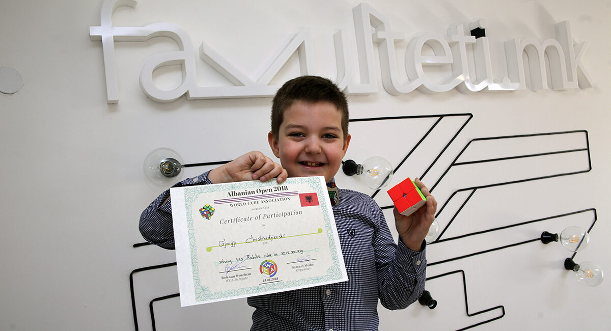 На второодделенецот Ѓорѓи Чешмеџиевски од Скопје му требаат неколку секунди за да реши сложена Рубикова коцка. Неодамна беше најмлад учесник на интернационалниот натпревар во решавање Рубикови коцки – „Albanian Open 2018“, кој се одржа во Тирана во просториите на Harry Fultz Institute и собори два рекорда. Нѐ посети со татко му Ристе. А, освен што ни ги презентира вештините, се дружеше и се натпреваруваше со уште едно наше гостинче, Никола Петров од Кавадарци. Сродни души.