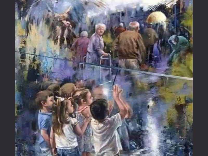 Оваа слика, насликана од шпанскиот сликар Хуан Луцена, под наслов „Што ќе правиме без нив“ е во чест на сите баби и дедовци што починаа од ковид-19 без можност да се збогуваат со најблиските.