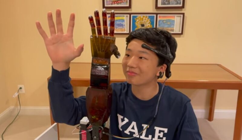 Бенџамин Чои, средношколец кој решил да направи протетска рака што може да ги контролира мозочните бранови, го започнал својот обемен проект во 2020 година, на 15-годишна возраст, користејќи го 3Д-печатачот на неговата сестра.
