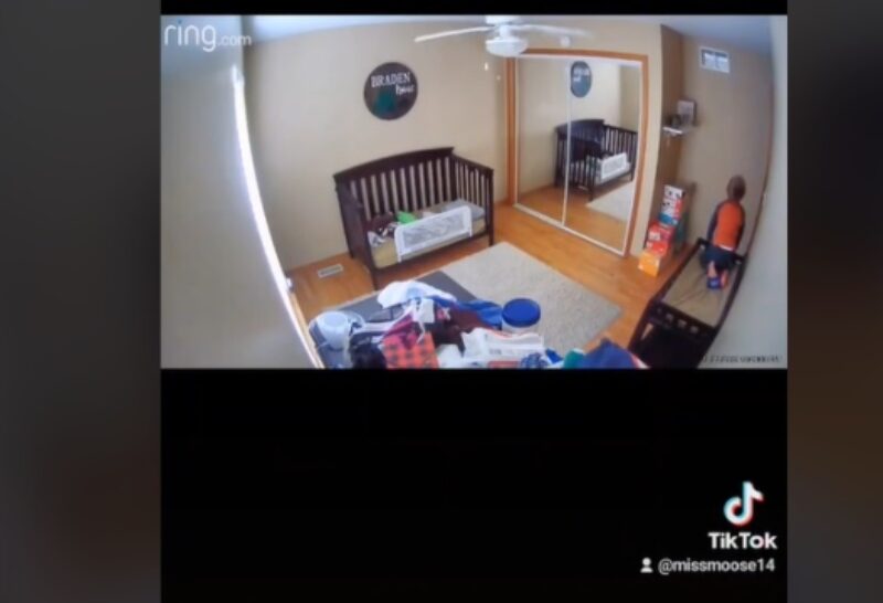 Корисничката со прекар „missmoose14“ објавила видео од безбедносната камера од детската соба на нејзиниот син. Нејзиниот мал син Брејден, од предучилишна возраст, се шетал низ неговата соба иако требало да биде во кревет и веќе да спие. Од безбедносната камера одеднаш одекнува гласот на неговата мајка: „Брејден, врати се во својот кревет“. Брејден се запрепастува од неочекуваниот звук кој како да излегува од никаде и се расплакал.