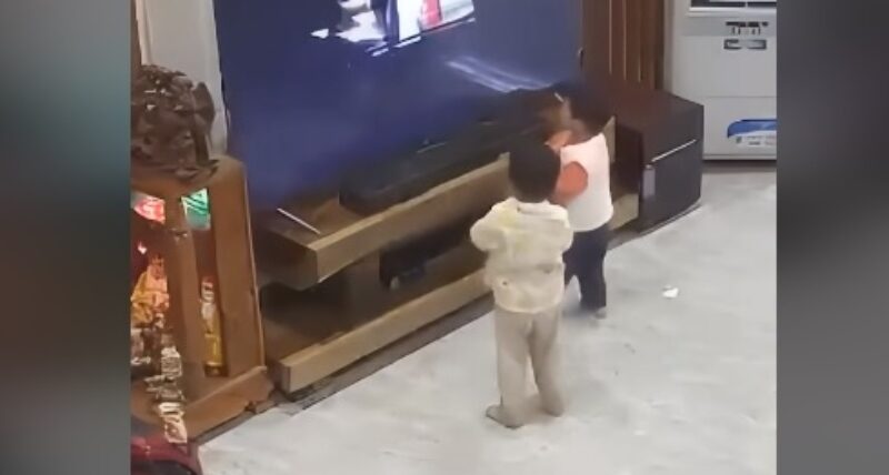 Овие две деца решиле да применат „интересна“ активност, а таа подразбира да го удираат ТВ-екранот во дневната соба со своите играчки. Забавно и за нив, но и за нивните родители откако ги фатиле на дело.