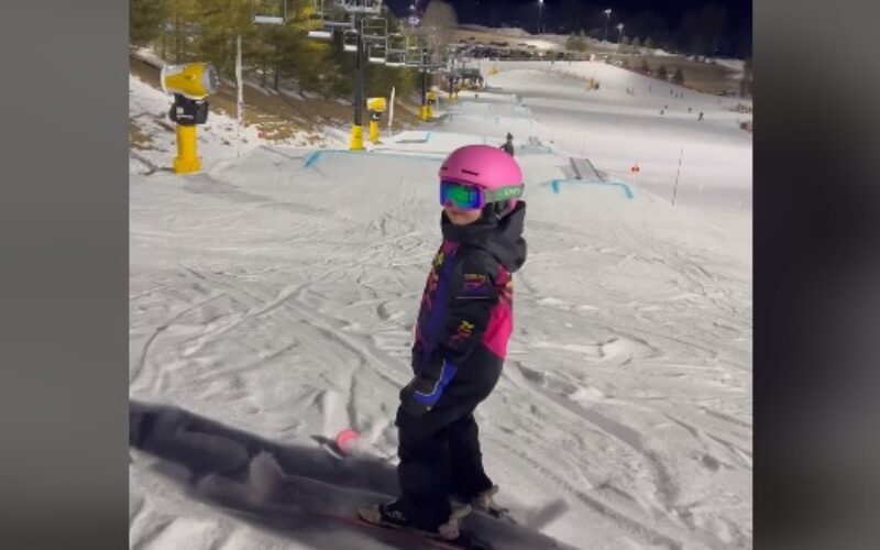 Таков е случајот со ова темпераментно девојче, кое е љубител на снегот и скијањето, но очигледно и на адреналинот.