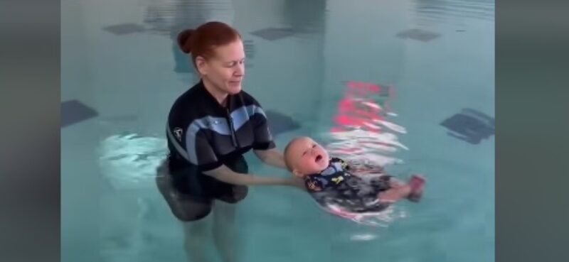 Во ова интересно видео ќе видите како едно шестмесечно бебе учи прво да плива, а потоа и да се превртува во вода (во текот на третата недела од тренингот), а во четвртата недела веќе сите тие вештини ги применува без проблем.