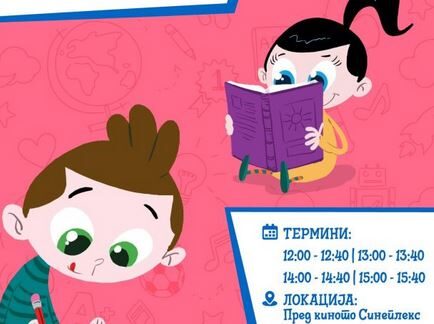 Овој викенд (20-21 мај), пред „Синеплекс“ во „Сити мол“ ќе се одржат бесплатни едукативни работилници со Биби и Боби во неколку термини: 12:00 ч., 13:00 ч., 14:00 ч., 15:00 ч.