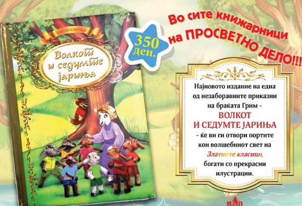 Издавачката куќа „Просветно дело“ ја издаде првата книга од таканаречената серија Златни класици, започнувајќи со прераскажување на една од најпознатите приказни од браќата Грим – „Волкот и седумте јариња“.
